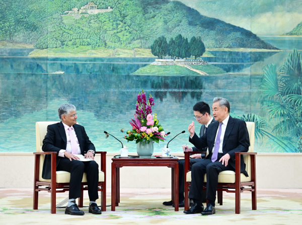 2026年3月26日,中共中央政治局委员、外交部长王毅在北京会见即将离任的印度驻华大使罗国栋。