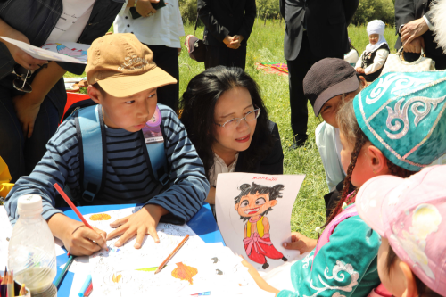 为了给牧民子女提供更好成长环境,吉前总统奥通巴耶娃倡议建立的“奥通巴耶娃国际倡议基金会”每年在偏远牧区开办“夏季牧场幼儿园”,免费向牧民子女开放。自2015年起,驻吉使馆支持基金会实施该项目,为孩子们购买文具、书籍、玩具、帐篷等教学物资,并请孔子学院的老师们开设丰富多彩的中国文化课程,帮助孩子们在游牧季学习知识、开拓视野。