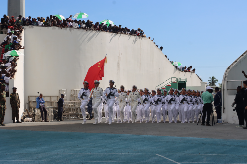 中国人民解放军更是阅兵场上毋庸置疑的主角,战士们军容严整,精神饱满,获中外来宾一致好评。庆典从上午八点进行到下午三点,持续时间长达7个小时,解放军官兵在烈日下始终手握钢枪,端正军姿,保持庄严肃穆。由于站立时间过长,有的官兵出现低血糖现象,但仍在队列中一动不动,与其他国家军队的松散形成鲜明对比,观礼的各国军官盛赞中国军人精神面貌。我解放军方队迈着整齐的步伐首个走过检阅场,科总统阿扎利夫妇、受邀观礼的各国元首和政府首脑、近万名观众起立鼓掌,向中国军队表达敬意。阅兵结束回程的路上,科政府官员、当地军官和民众纷纷和解放军官兵合影,高喊“中国”、“你好”。解放军官兵乘车前往机场时,当地民众纷纷走上街头,当地学校自发组织学生欢送。